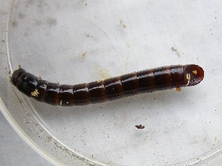 カミキリムシの穴 横に丸い穴でかわいている。幼虫の形のちがい。(記・竹内秀)