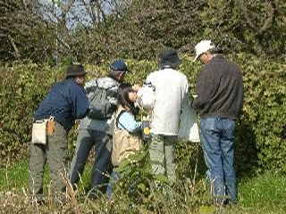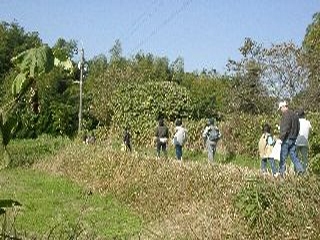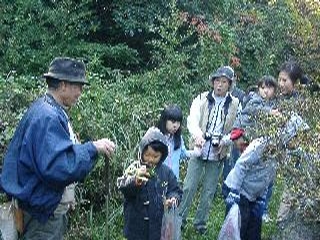 今日の参加者は、小さいこどもが多く、お母さんが連れてきた親子連れが多かった。東浦高校に少し「侵入」してマテバシイやまつぼっくりに歓声を上げてひとしきりひろう。富士見台から高校周辺の田畑の周りを回る。距離は短くゆっくりした行程になった。以前は通れたところがセイタカアワタチソウの通せんぼで通れなくなっていて、農地の荒廃を少しではあるが感じた。シャシャンボの実が少ししかなっておらず、十分味わえなかったのが残念だった。カラスウリの種にカマキリの顔を連想したり、サザンカの花に寄るアブに混じってオオスズメバチがまだ居ることを見たり、メジロを確認したりした。おそるおそるムカゴを口に入れおいしい!という子、まじいとはき出す子と、味覚もいろいろ。でも、やっぱり人気はテントウムシ君でした。そして、観察会が終わったころに畑の隅にあった、籾殻の山。お母さんは、ちょっと渋い顔でしたが、子どもたちは満面の笑みでした。