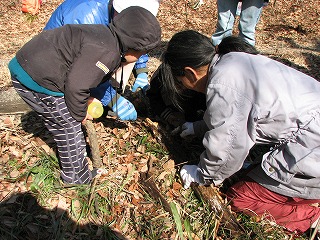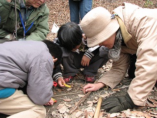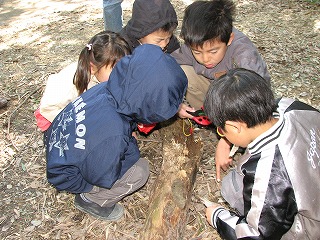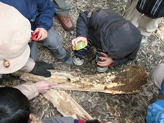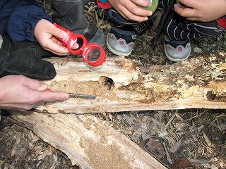 参加した子どもたちは、やはり、昆虫が大好きでした。樹木の説明には関心ありません。ところが、目的地への途中の朽ち木でクワガタの成虫を発見したので、子どもたちは再発見への期待度満々…。結果的には再発見できませんでしたが、目的地で頑張って探しましたことなど、思い出に残る観察会となりました。