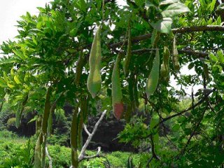藤棚のフジに緑の果実がたくさん付いていました。。
