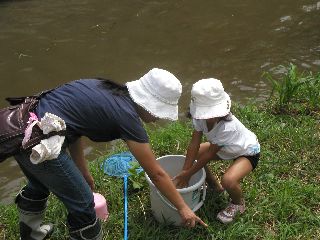誰かが捕まえたと言えば自分も,より大きいのを,誰も捕まえていないのを,というのは大人も子どもも同じ。誰もが夢中になって,楽しんだ。素手でヌマガエルを何匹も捕まえる子,ザリガニが気に入った子,大きなおたまじゃくしに歓声を上げる子。ヒルにとても興味を示す子。様々でした。