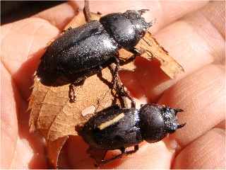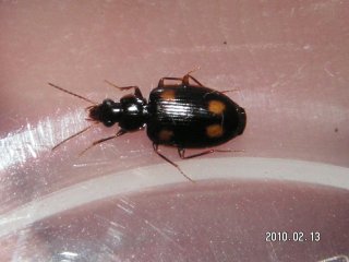 【左】コヨツボシアトキリゴミムシ?(枯れ木の樹皮下で冬越ししていました)