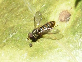 【中】ホソヒラタアブ(成虫越冬するそうです。幼虫はうじ虫でアブラムシの天敵のひとつです)
