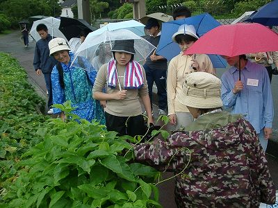 ナタマメの大きな白い花が咲いていたので、立ち止まって説明