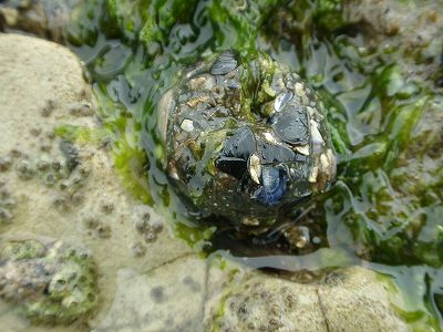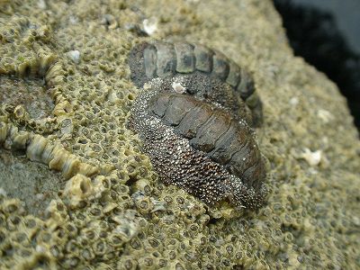 【左】ムラサキイガイ          【右】イワフジツボとヒザラガイ