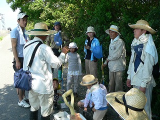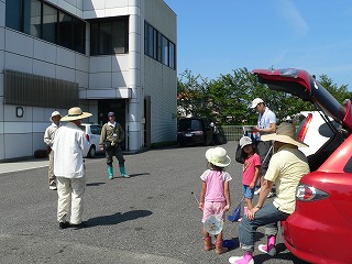早朝より茹だるような暑さの中での観察会になった。奥田農協Pで5家族の受付と当日の予定説明の後、