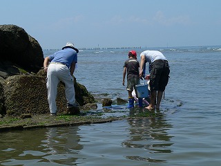 当日の潮時は大潮の干潮時間帯であったが、満月期であったため遠浅とはならず、イシガニやガザミ採集数は少なかった。