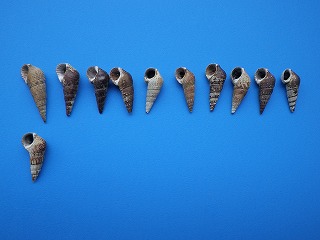 ウミニナ類を56個体サンプルして、後日に内訳を調べてみました。ヘナタリ、フトヘナタリは愛知県の準絶滅危惧種です。