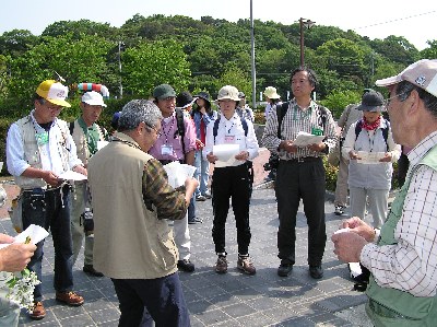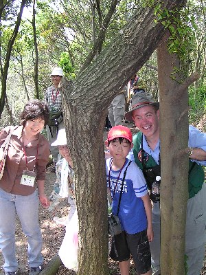 【右】出発前にジョンさんが森の生き物体操を教えてくれました。