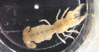 【左】水を浄化してくれるアナジャコ。 【右】卵を抱いたスナモグリもいました。