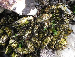 【中】マガキです。二枚貝で岩にセメントみたいなもので張り付いています。