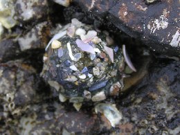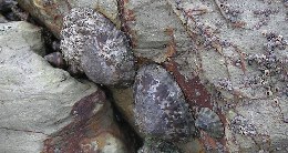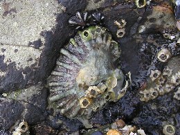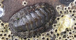 【中】8枚の貝殻を持つヒザラガイとイワフジツボ。
