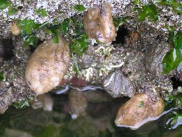 【右】シロボヤ。脊索動物といって背骨が出来始めている生き物です。カニさんより高等な生き物になります。