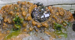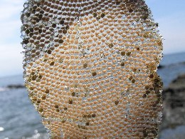 【中】タンバノリについたコケムシの仲間です。ツブツブが一つ一つが生き物で、いわゆる群体を作る動物です。