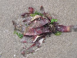【左】タンバノリの仲間です。海藻が老化すると根が離れて流藻となります。流藻は生き物の産卵場所や隠れ場所として大切です。