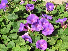 【右】美しく大きな花を咲かせる外来植物のマルバアサガオです。