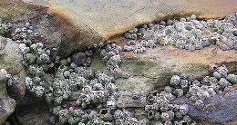 【中】イワフジツボが磯にびっしり付いていた所がありました。