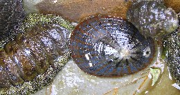 【左】キクノハナガイです。有肺類といって海の生物が陸に上がって又、戻ったものといわれています。
