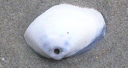 【右】丸い穴はバカガイがツメタガイに食べられた痕です。