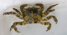 【左】イソガニ。波に流されないよう鋭い爪で岩にしがみ付いています。