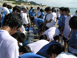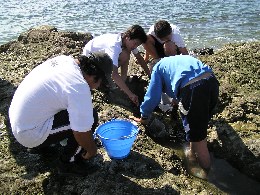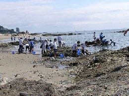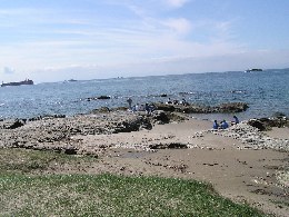 【中】灯台から南方の方角です。磯の生き物を観察しています。