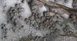 【左】タマキビ。飛沫帯に生息していて、海水に浸かることを嫌います。