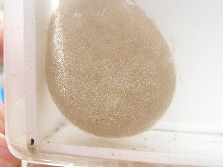 【左】タマシキゴカイ(クロムシ)の卵塊