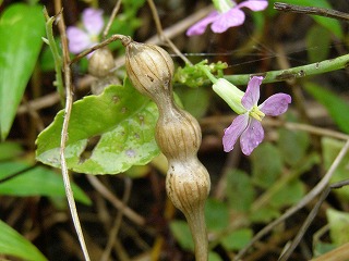 【左】ハマダイコンと種子、水に浮かびます。  【右】イシガニの脱皮。