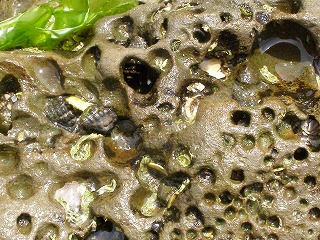 【左】穿孔貝などが空けた穴