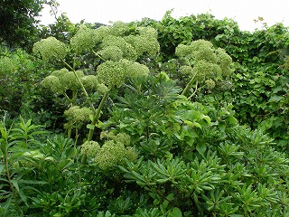 ハマダイコン、コウボウシバ、ツルナ、ハマウド、ハマボッス、トベラ
