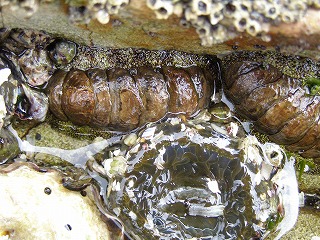 【左】ヒザラガイとヨロイイソギンチャク。