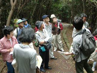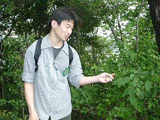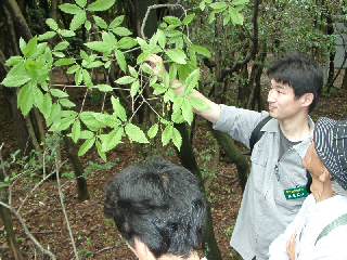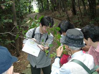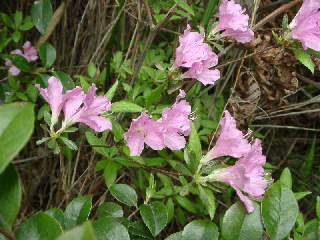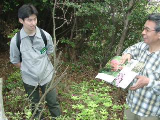 【左】写真の指導員、今回、デビュー戦。今まではサブ的でしたが、本日はメイン解説者 【右】ふつうのヤマツツジ。今年は開花が遅く、本日のミカワヤマツツジは時期尚早でした