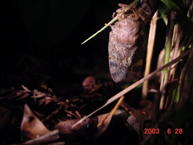 【左】ニイニイゼミの羽化 今年初めて見た人がほとんどでした。