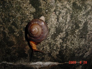 【左】ブロック塀にイセノナミマイマイが何頭か着いていました。石灰分求めているのでしょうか?>