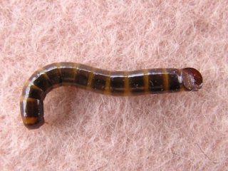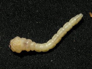 【左】枯れ木の中に何かいるみたいです。 【右】タマムシの幼虫です。