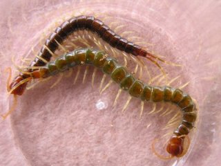 【左】各地でよく見られるキマワリです。 【右】トビズムカデは毒があり噛まれると大変痛いです。