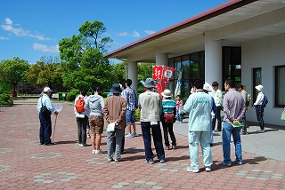 健康の森、北よりの駐車場近くの事務所前に集合。汗ばむくらいの陽気。