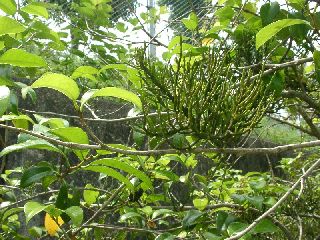 【左】ヒノキバヤドリギ 【右】どれどれ、何がとれたかな?