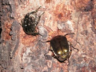 【左】カナブンとシロテンハナムグリ(どちらも幼虫は朽ち木や腐葉土を食べるそうです)