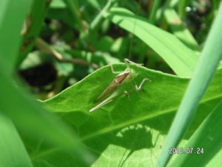 【左】ホシササキリ(少し湿った草むらがあればたいてい見られます)