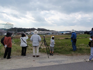 ウグイスの“じゅっじゅっ”という地鳴きの声を聞き、続いてメジロの集団がセンターのフェンス沿いの木々にやってきて、せわしく動く愛くるしい姿を見せてくれました。ツグミ3羽がそれぞれの電線に止まっていた。同じ視界内に3羽同時に居ることが何か特別のように思えました。