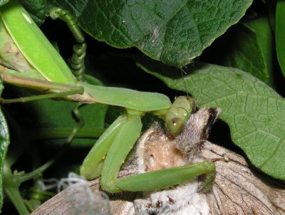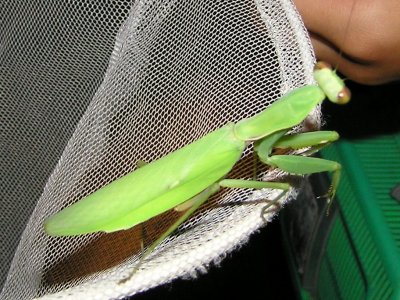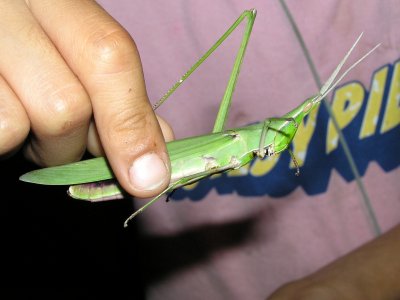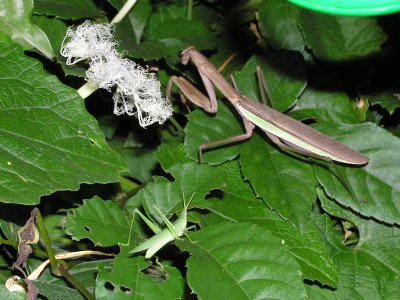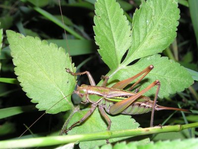 【右】カラスウリから少し行くと、キリギリスのお母さん。
