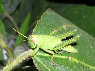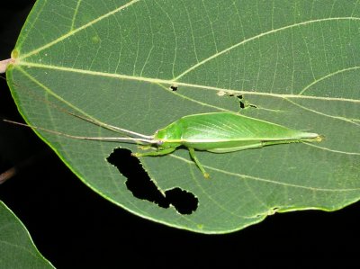 【左】アオマツムシをアカメガシワの上でやっと見つけました。