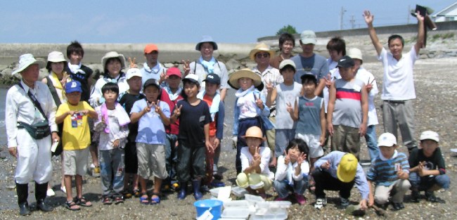 今年、2月に開港した中部国際空港の北東約3キロにある多屋海岸で海辺の生き物の観察を行いました。知多半島に住む一般の人は、海に近いところに生活し、時々海に出かけているのですが、以外に海辺の生き物について知っている人は少ないような気がします。今回のような目的で興味を持って海辺の生き物を観察すると、普段見過ごしている様々な生き物を発見することができます。そして、海辺で確認した生き物の種類によって海の環境を知ることができるのです。ここの海岸では、今回が初めてですので比較することはできませんが、生き物がどう変化するか引き続き、観察してみることが大切であると考えます。