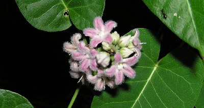 【左】アオマツムシが盛んに鳴いていました。 【右】ガガイモノの花に見とれました。