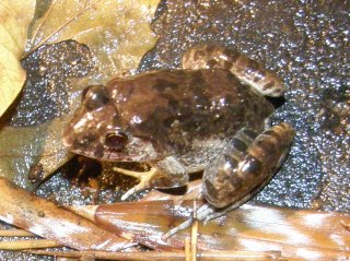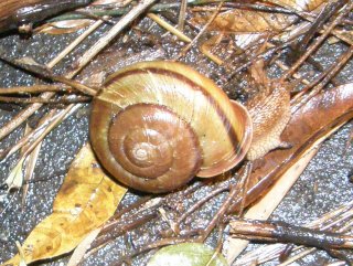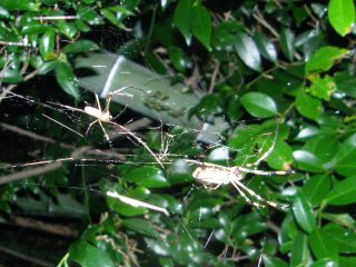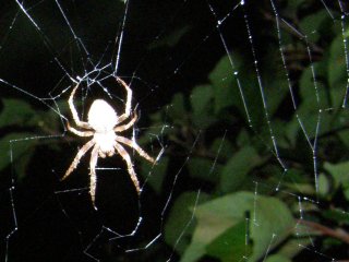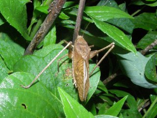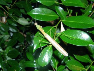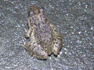 2000年9月の東海豪雨以来の雨が各地で降っていました。特に岡崎市や一宮市では大きな被害が出ていました。幸い知多地方は平穏で作物には丁度いいお湿りでした。  当初、発電機を設置し、水銀灯を点して明かりに集まる虫を観察する予定でしたが小雨が降っていたため取り止め、懐中電灯持参でナイトハイクを行いました。雨も上がり、虫たちが鳴き始めました。特に、外来性のアオマツムシの音が大きく、他の虫の音をかき消すくらいでした。それでも何種類かの虫の音を確認することが出来ました。地面が濡れた状態でしたので、雨が大好きな生き物たちが道路にたくさん現れていました。(記・降幡)
