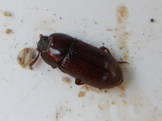 【左】エグリゴミムシダマシ。朽木を食べています。