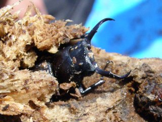 【左】コクワガタノ成虫も越冬していました。  【右】朽木を分解しています。