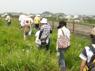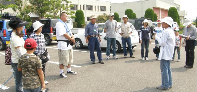 9時30分、公民館Pで挨拶、注意事項と観察場所の説明後 9時30分、小鈴谷の愛知用水沿いに車で移動。