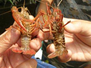 【左】アメリカザリガニ、左が雄、右が雌